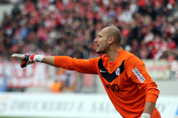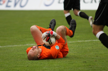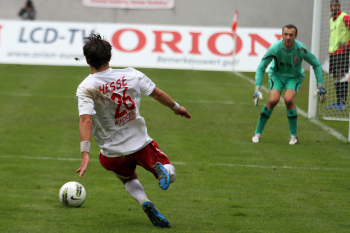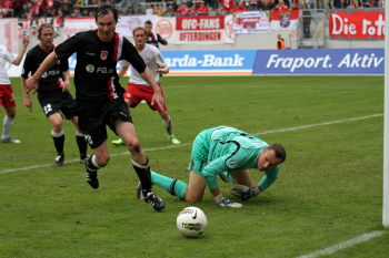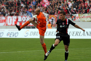 Torwart Miachel Hoffmann (Regensburg) kann nicht mehr eingreifen