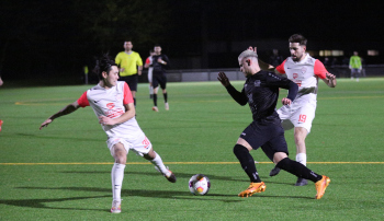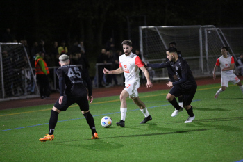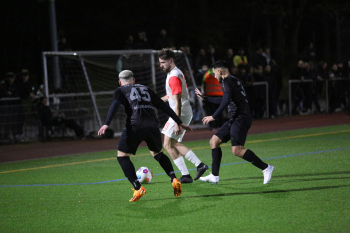 TATSUMA UCHIDA (30, Spvgg. 03 Neu-Isenburg) und KEANO CASTIGLIONE (19, Spvgg. 03 Neu-Isneburg) gegen Gianluca Alessandro (45, SV Neu-Isenburg)
