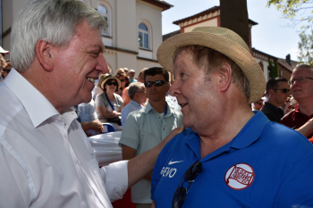 Die Frauenmannschaft des OFC (Kickers Offenbach) beim Hessentag in Hofgeismar mit Barbara Klein hier mit ursula Bouffier