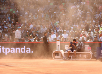 21.05.2025, xcex, GER, Hamburg, Tennis Stadion am Rothenbaum, Tennis, Herren, ATP 500 Turnier, Tournament, Bitpanda Hamburg Open 2025, Justin Engel (Deutschland), Sandsturm, Wind, Sand, Symbolbild