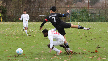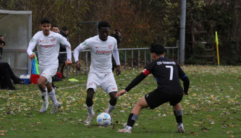 Minwoo Leon Park (FSV Frankfurt U19) gegen Ousman Hatab Yarbo (OFCU19) links Emirhan Delikaya (OFCU19)