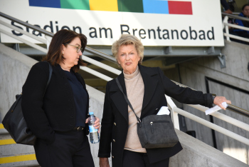 Bild zeigt Ex-Oberbürgermeisterin Petra Roth, die die Verdienste von Doris Fitschen für die Sportstadt Franfurk würdigte und sie zum Frankfurter Mädsche erklärte