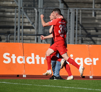 Torjubel nach dem Tor zum 2:0 durch den Torschützen Brian Schwechel (KSV Hessen Kassel) mit Lukas Iksal (33, KSV Hessen Kassel)