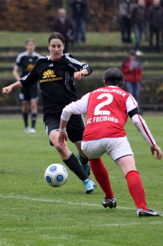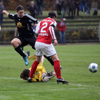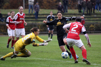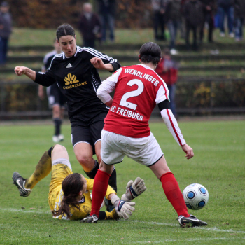 Saison 2009/2010, 1. FFC Frankfurt vs SC Freiburg, Birgit Prinz vs Stephanie Wendlinger und Torwart Laura Benkharth