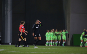 VfL Wolfsburg - Eintracht Frankfurt (SGE), Enttaeuschung, Trauer, Frust nach der Niederlage, traurig, niedergeschlagen, Laura Feiersinger (SGE)