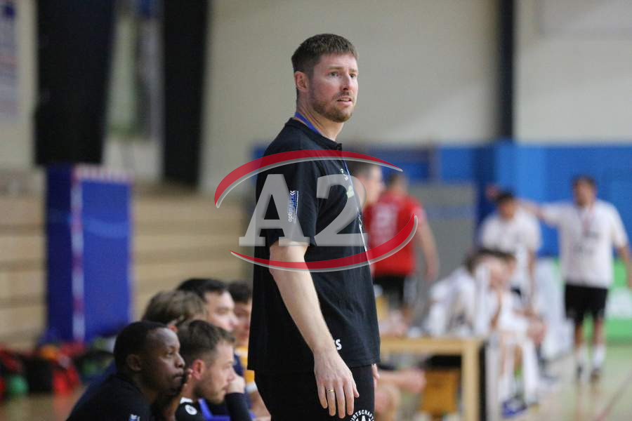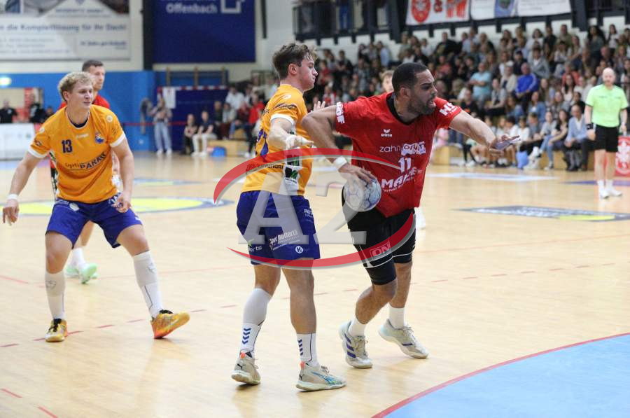 rechts Spielertrainer Ex-Nationalspieler Nico Büdel (TSG Offenbach-Bürgel)