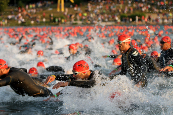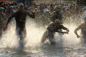 Massen-Start um 7:00 Uhr, die Masse der Schwimmer