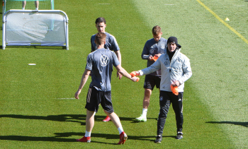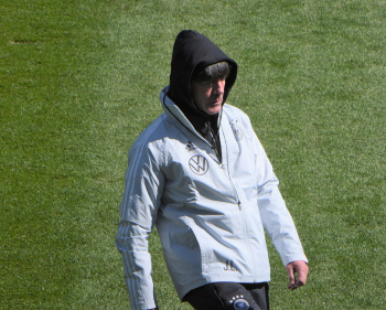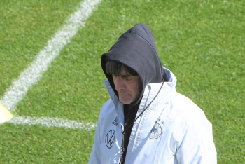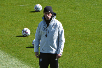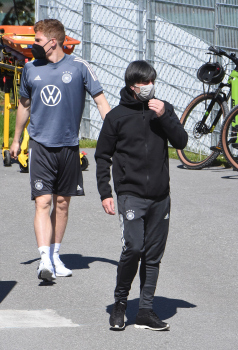 30.05.2021 Österreich, Seefeld, DFB Trainingslager Deutsche Nationalmannschaft Training Bundestrainer Joachim Löw wachsen Wasserflügel ********* Foto: Peter Hartenfelser