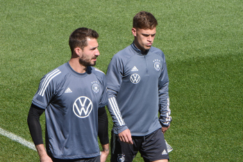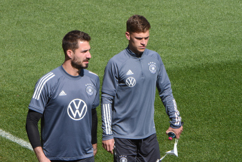 30.05.2021 Österreich, Seefeld, DFB Trainingslager Deutsche Nationalmannschaft Training Torwart Kevin Trapp und Joshua Kimmich (GER) ********* Foto: Peter Hartenfelser
