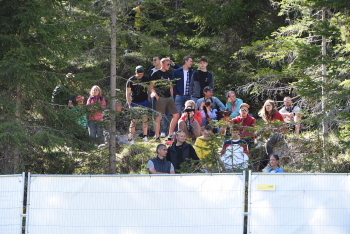 30.05.2021 Österreich, Seefeld, DFB Trainingslager Deutsche Nationalmannschaft Training Zaungäste hinter dem Sichtschutzzaun auf dem Hügel ********* Foto: Peter Hartenfelser