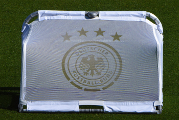 30.05.2021 Österreich, Seefeld, DFB Trainingslager Deutsche Nationalmannschaft Training Symbolbild kleines Trainingstor mit DFB Logo ********* Foto: Peter Hartenfelser