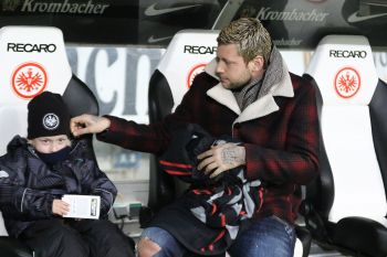 20.12.2016 Frankfurt, Commerzbankarena 1. Bundesliga, Fu?ball GER 1.BL 1. BL 2016 2017 Eintracht Frankfurt (SGE) - Mainz 05 - Derby Eintracht-Verteidiger Marco Russ (Eintracht Frankfurt) liebevoller Papa
