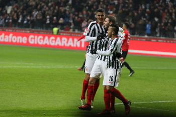 20.12.2016 Frankfurt, Commerzbankarena 1. Bundesliga, Fu?ball GER 1.BL 1. BL 2016 2017 Eintracht Frankfurt (SGE) - FSV Mainz 05 - Derby Torjubel Barkok, Aymen, Hrgota, Branimir, Fabian Marco (Eintracht Frankfurt)