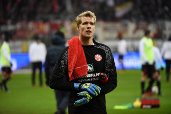 20.12.2016 Frankfurt, Commerzbankarena 1. Bundesliga, Fu?ball GER 1.BL 1. BL 2016 2017 Eintracht Frankfurt (SGE) - FSV Mainz 05 - Derby Torwart Jonas L?ssl (Mainz 05) nach dem Aufw?rmen