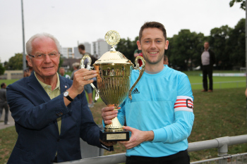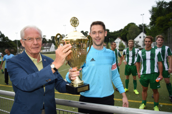 26.07.20155 Neu-Isenburg, Buchenbusch Saison 2015/2016 Stadtmeisterschaft Finale TSG Neu-Isenburg gewinnt die Stadtmeisterschaft B?rgermeister Herbert Hunkel ?berreicht den Pokal ********** Foto: Peter Hartenfelser