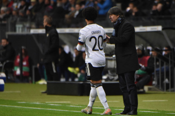 Bundestrainer Joachim Löw gibt Serge Gnabry (GER) Anweisungen