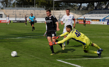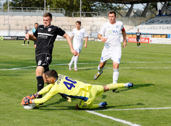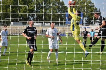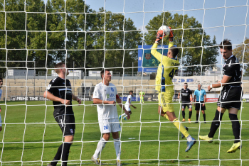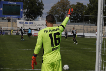 Torwart Daniel Endres (16, FSV Frankfurt), Dominik Nothnagel (29, FSV Frankfurt) gegen Jihad Boutakhrit (Alzenau)
