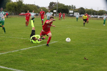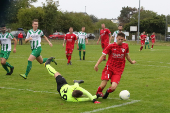 30.08.2020 xmgoodx Heusenstamm-Rembrücken Pokal Saison 2020/2021 TV Rembrücken - TSG Neu-Isenburg Atila Celik (17, TSG Neu-Isenburg) gegen Torwart David Hübsch (Rembrücken) ****** Foto: Peter Hartenfelser