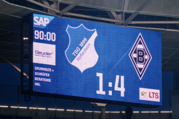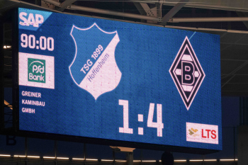 Feature, Symbolbild, das Endergebnis 1:4, wird auf der Anzeigetafel angezeigt.