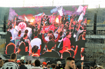19.05.2018, Frankfurt am Main, Commerzbankarena Public Viewing DFB-Pokalfinale FC Bayern München - Eintracht Frankfurt Eintracht Frankfurt Fans begeistert von der Anzeige auf der Grossleinwand Jubel ********* Foto: Peter Hartenfelser