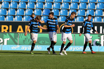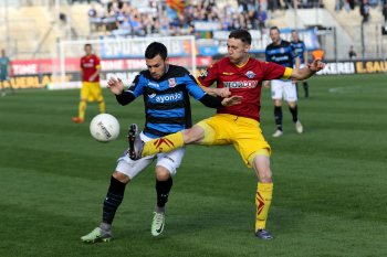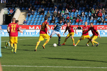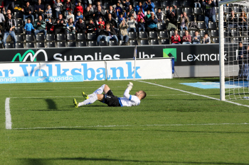 Massimo Ornatelli (FSV Frankfurt ) gab die Vorlage zum 1:0, Torwart Lukas Kruse (Paderborn geschlagen)