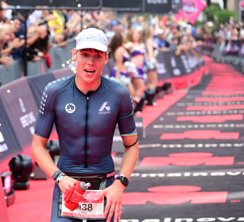 18.08.2024 xkhx Frankfurt am Main IRONMAN European Championship Frankfurt 2024 Ziel Bester Deutscher Platz 6 für Hoffmann Jonas DEU (Germany) ***** Foto: A2Bildagentur Hartenfelser
