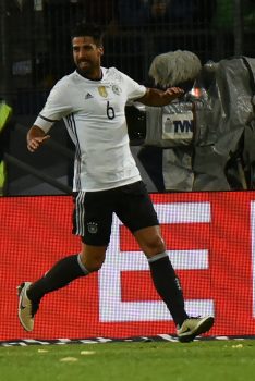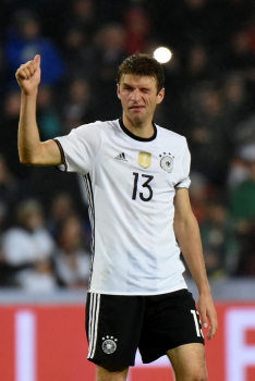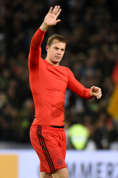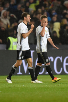Die deutsche Startformation, h.R.v.l. Torwart Manuel NEUER (GER), Jonas HECTOR (GER), Mats HUMMELS (GER), Toni KROSS (GER), Sami KHEDIRA (GER), Jerome BOATENG (GER), v.R.v.l. Joshua KIMMICH(GER), Julian DRAXLER (GER), Thomas MUELLER (GER), Mario GOETZE (GER), Mesut OEZIL (GER).