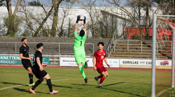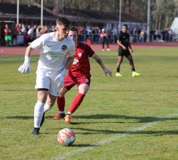 Tor zum 2:1 durch den Torschützen PHILIP JACOBS (3, Spvgg. 03 Neu-Isenburg), Torwart FABIAN JURICIC (Dersim) gesclagen