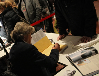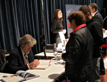 01.12.2019, xxx, Reinhold Messner, Vortrag fuer sein neues Buch ?berleben,, - Live 2019, Offenbach am Main, beim Signieren, von der Seite