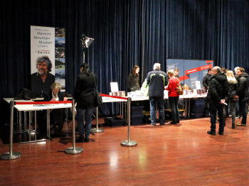 01.12.2019, xxx, Reinhold Messner, Vortrag fuer sein neues Buch ?berleben,, - Live 2019, Offenbach am Main, Der Stand mit B?chern zum Kaufen.