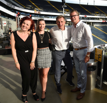 08.08.2018 Frankfurt, Commerzbankarena Ballcom feiert 50 und 15 Geburtstagskind Steffen Ball mit Ehefrau und die Verlobten Frank Kuhlmann und Nina Isabel Knop