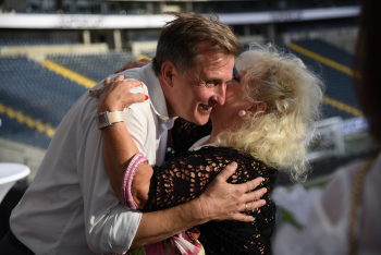 08.08.2018 Frankfurt, Commerzbankarena Ballcom feiert 50 und 15 Michael Walter Paris (parteiloser Politiker) mit Ehefrau Helena