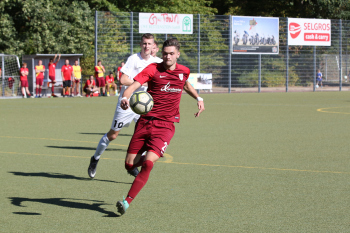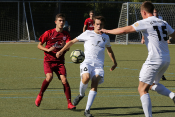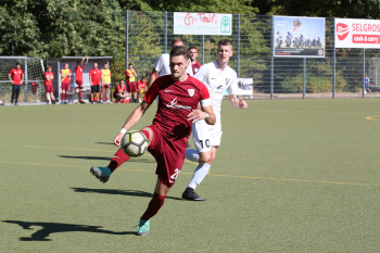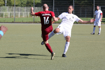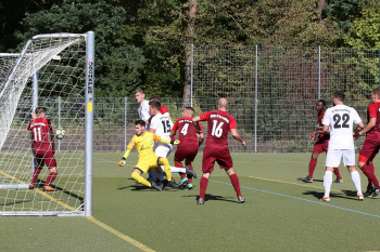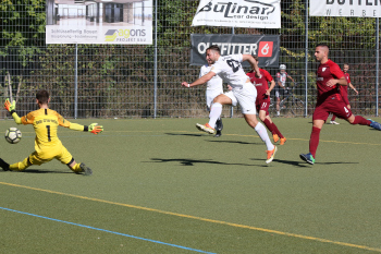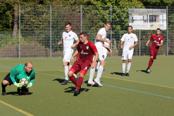 Christian Gehweiler (FC Neu-Isenburg) gegen Torwart Henrik Jöckel (Spvgg. 03 Neu-ISenburg II)