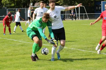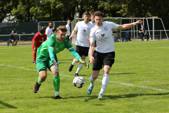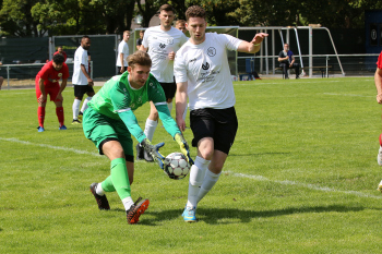 04.06.2022 xmgoodx Offenbach am Main Fussball Amateure Saison 2021/2022 - Gruppenliga VfB Offenbach – 1. FC Langen Torwart Tim Kulessa (Langen) und Marten Deucker (Langen) ***** Foto: A2Bildagentur Hartenfelser