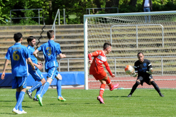 085.05.2016 Neu-Isenburg Sportpark Verbandsliga S?d, Saison 2015/2016 VBL Spvgg. 03 Neu-Isenburg - KV M?hlheim Tor Mauel Profumo (03), Torwart Marco Zeiger (M?hlheim) geschlagen ********** Foto: Peter Hartenfelser