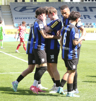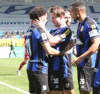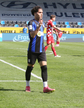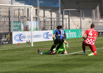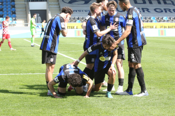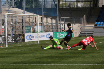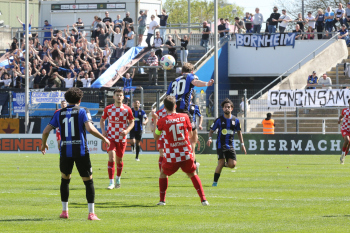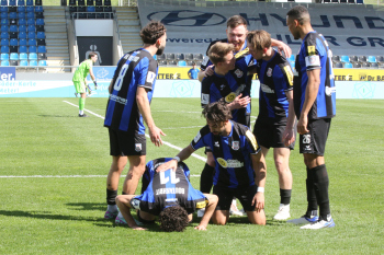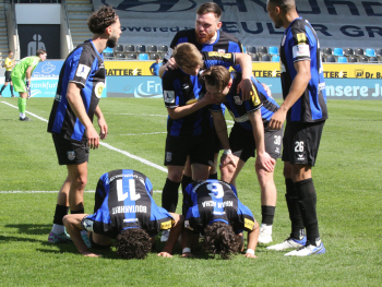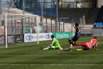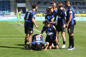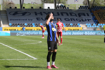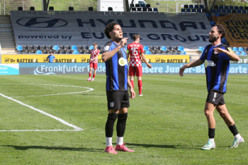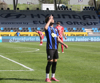 Torjubel nach dem 1:0 durch JIHAD BOUTAKHRIT (11, FSV Frankfurt) DER ZUSAMMEN MIT AMID KHAN AGHA (6, FSV Frankfurt) den Boden küsst