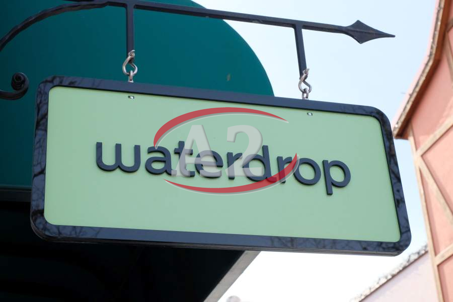 19.02.2026, xcex, GER, Neumuenster, Outlet, Shop, Marke, Geschaeft, Wirtschaft, Schild, Werbung, Konzern, Symbolbild, Logo, Waterdrop Microdrink, Wasser, Ernaehrung, Geschmack ********* Foto: Peter Hartenfelser