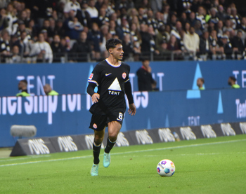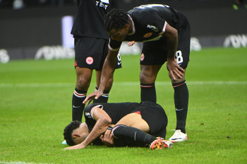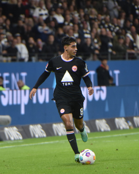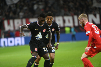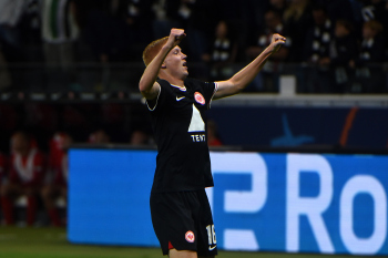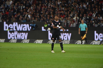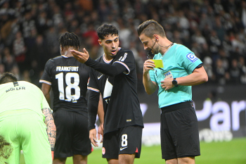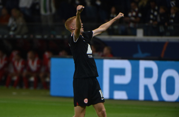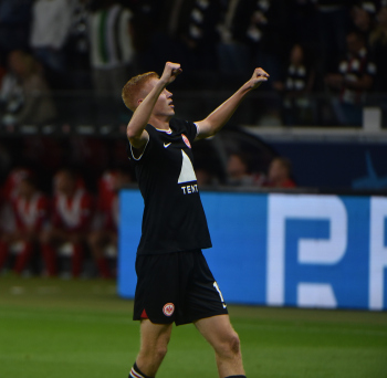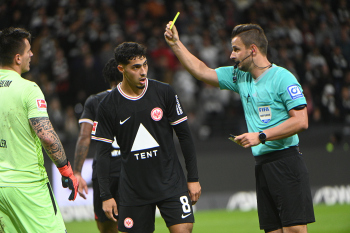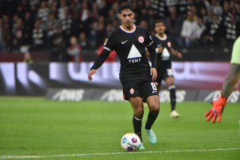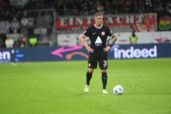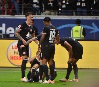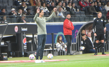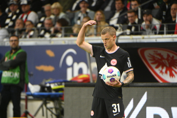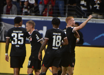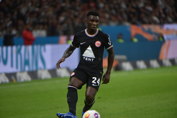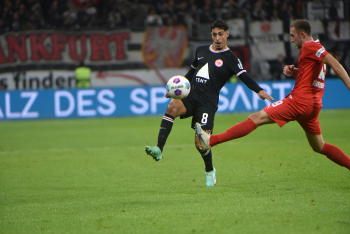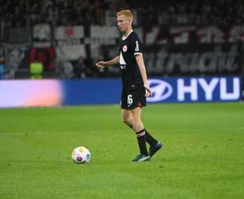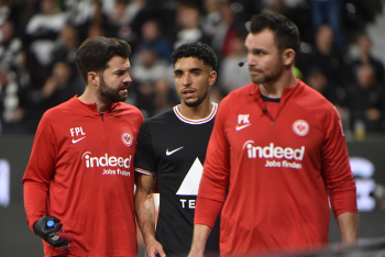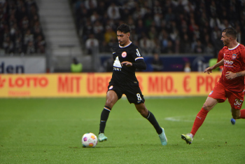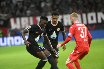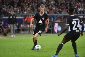 Jessic Ngankam (18, Eintracht Frankfurt) kümmert sich um Omar Marmoush (7, Eintracht Frankfurt)
