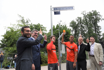 Einweihung der neuen Adresse des ProfiCamps von Eintracht Frankfurt und Enthüllung des Straßenschildes