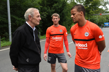 Stadtrat Mike Josef, Axel Hellmann Vorstand Eintracht, Erik Durm (25, Eintracht Frankfurt), Timothy Chandler (22, Eintracht Frankfurt), Eintracht Frankfurt Legende Karl-Heinz „Charly“ Körbel