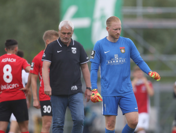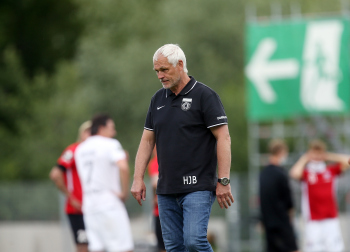Enttäuschung Großaspach, V.li. Niklas Sommer (Grossasp) , Maximilian Reule (Grossasp) , Trainer Hans Jürgen Boysen (Grossasp) , Julian Leist (Grossasp) , Dan-Patrick Poggenberg (Grossasp) .
