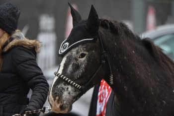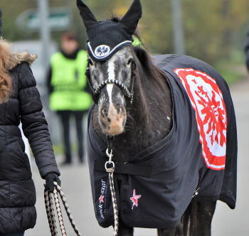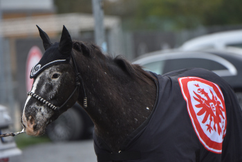 12.11.2022 Dreieich, Sportpark Dreieich LOTTO Hessenliga Saison 2022/2023 Eintracht Frankfurt U21 - SV Weidenhausen Die Eintracht Frankfurt hat auch tierische Fans wie hier das Eintracht-Pferd emspor, ********* Foto: Peter Hartenfelser