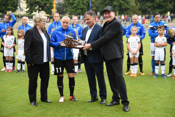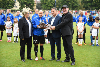 Mandy Islaker ,ANNELIE HAUPTVOGEL, Saskia Bartusiak, Minister Peter Beuth , Sophie Schmidt, FFC-Manager Siegfried Dietrich.,