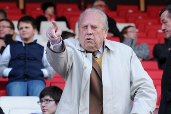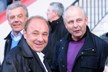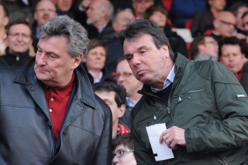 14.04..2010, 3. Liga, 34. Spieltag: Kickers Offenbach :Wuppertaler SV Borussia, J?rgen Neppe und Bernd H?lzenbein (Eintracht Frankfurt)