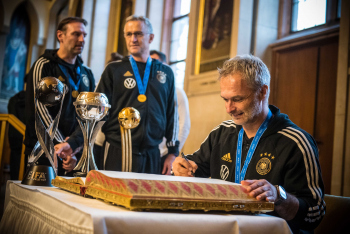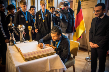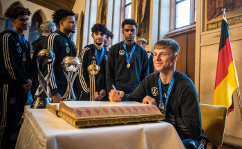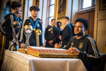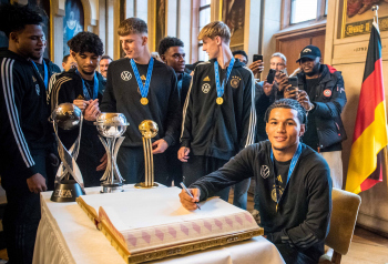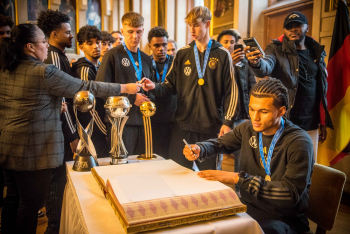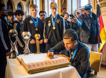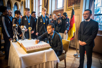 04.12.2023, Eintrag der U17-Weltmeister_Nationalmanschaft ins goldene Buch der Stadt Frankfurt