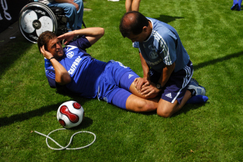 7.7.2007, Freundschaftsspiel Victoriy Aschaffenburg vs Schalke 04, Marcelo Bordon (Brasilien) beim Dehnen Bild ist honorarpflichtig, h?here Aufl?sung auf Anfrage
