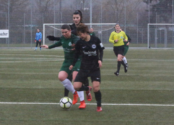 TSG Neu-Isenburg Sanne Martens (Nr.18) - Eintracht Frankfurt Kanako Fusse (Nr.9) & Eintracht Frankfurt Lisa Pfretzchner (Nr.3)
