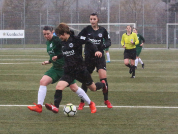 Testspiel Frauen TSG Neu-Isenburg gegen Eintracht Frankfurt bei strömendem Regen und kaltem Wind