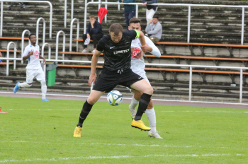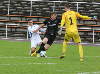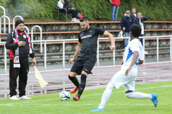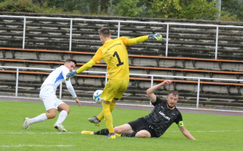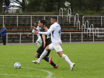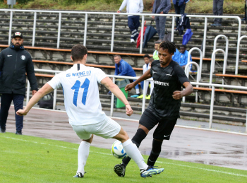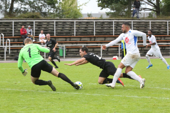 VITOMIR SER (Heusenstamm) gegen ALESSIO DI VITTORIA (Wicking) und Torwart Jim Stegmann (Wicking)