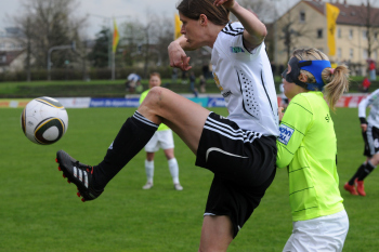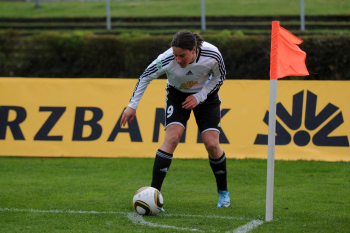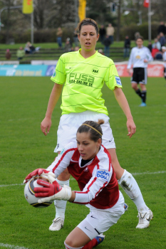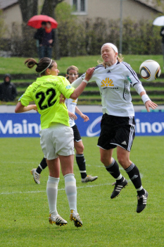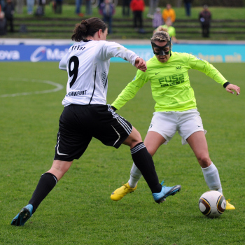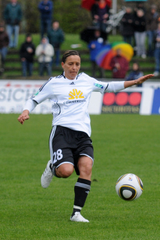 Saison 2009/2010 , 1. FFC Frankfurt : SG Essen-Sch?nebeck, Birgit Prinz (FFC) legt sich an der Ecke den Ball zurecht